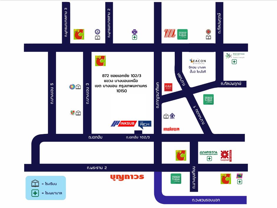 ที่อยู่ ซอยเอกชัย 102/3 เอกชัย 872/2 ถนนบางบอน 3 แขวงบางบอนเหนือ เขตบางบอน กรุงเทพมหานคร 10150
