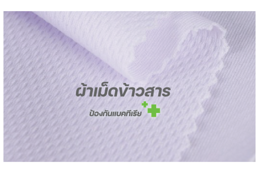 ผ้าเม็ดข้าวสารเป็นผ้าที่มีลักษณะเป็นจุดๆ เหมือนเม็ดข้าวสารที่กระจายออกไปบนผ้า สร้างลักษณะเป็นลายเรียบหรือลายพิเศษได้ตามความต้องการนอกจากนี้ ผ้าเม็ดข้าวสารยังมีคุณสมบัติในการดูดซับความชื้นได้ดี ทำให้ผ้าแห้งไวและไม่เปื้อนง่าย